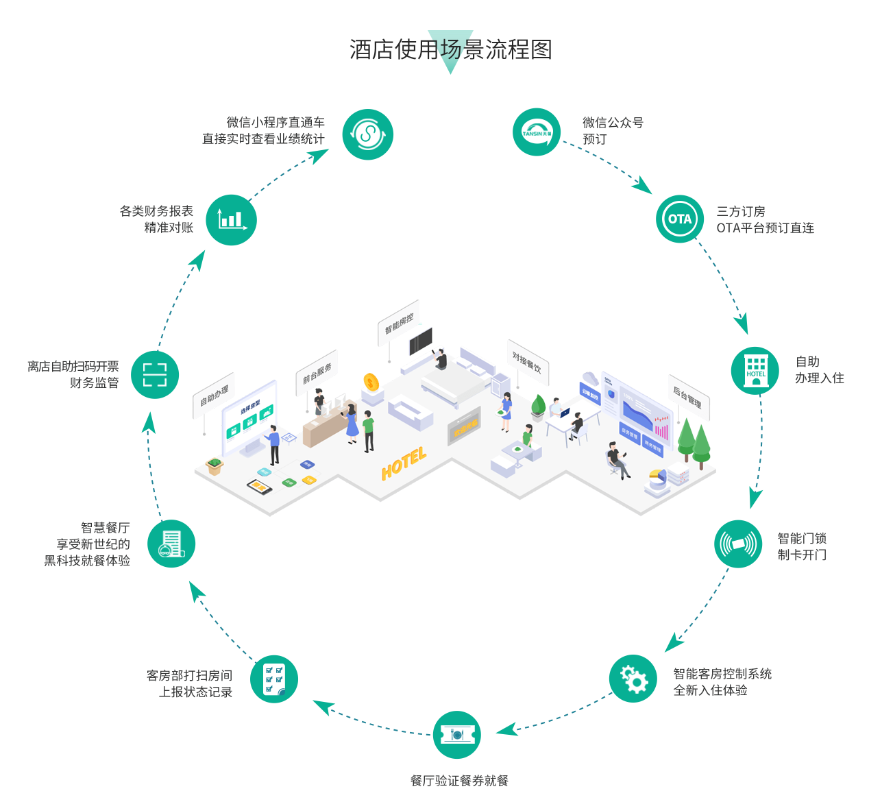 將酒店運(yùn)營(yíng)完全接入互聯(lián)網(wǎng),數(shù)據(jù)可實(shí)時(shí)查看,手機(jī)端、三方訂房平臺(tái)、營(yíng)銷(xiāo)、會(huì)員等各項(xiàng)酒店黑科技無(wú)死角全打通。
